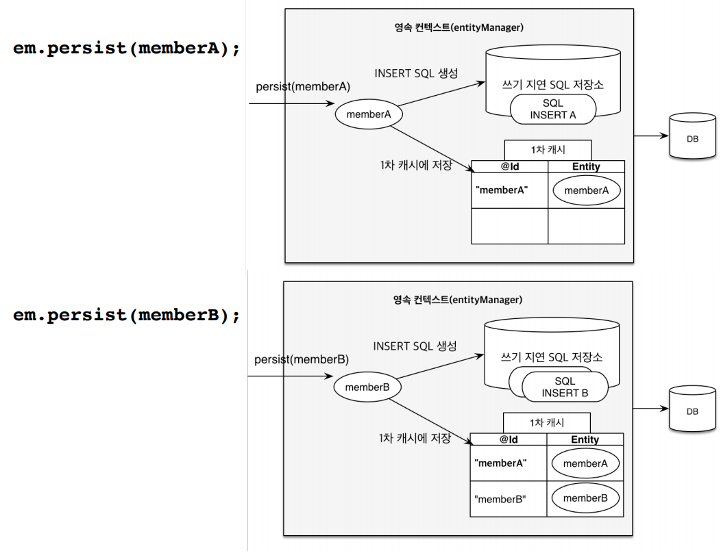 em.persist(member); // 1차 캐쉬에서 저장됨