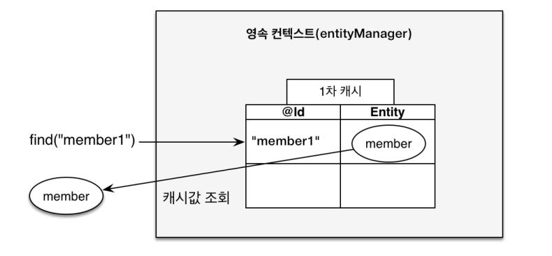 Member findMember = em.find(Member.class, "member1"); // 1차캐쉬에서 조회