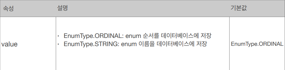 ORDINAL 사용 시 Enum 클래스에 새로운 요소를 추가할 때 버그가 생길 수 있으니 STRING을 사용