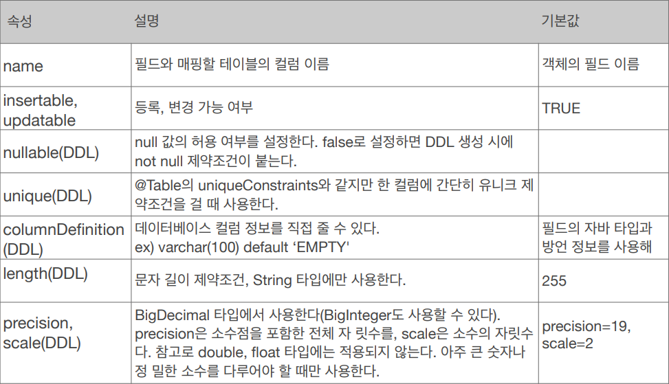 @Column 속성
