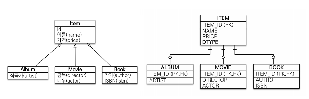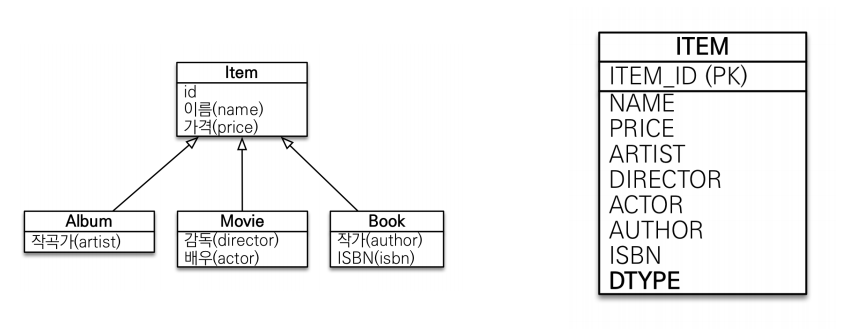 부모클래스에 선언하고 하위 클래스를 구분하는 용도의 컬럼인 DTYPE을 추가한다.