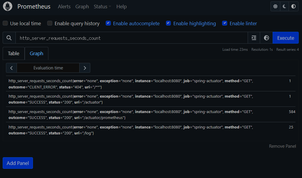 implementation 'io.micrometer:micrometer-registry-prometheus' // prometheus 추가