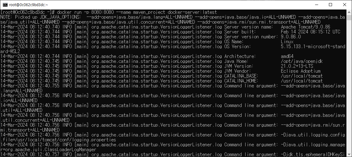 docker run -p 8080:8080 --name maven_project docker-server:latest