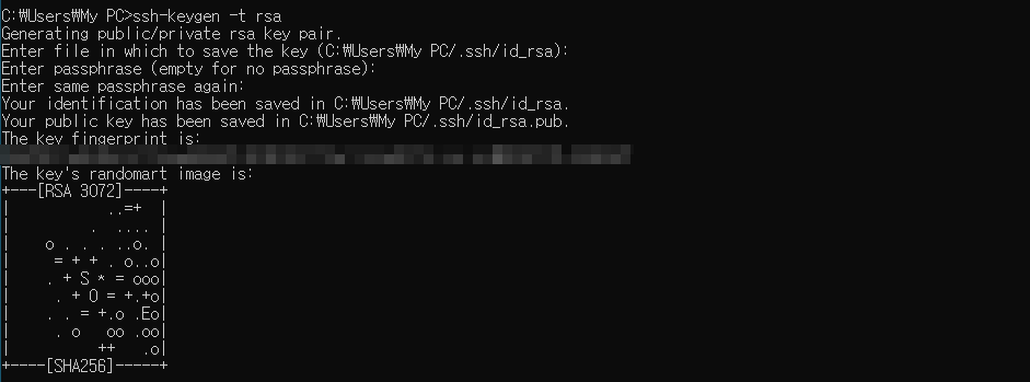 위 명령어를 통해 SSH 키를 생성해줍니다.