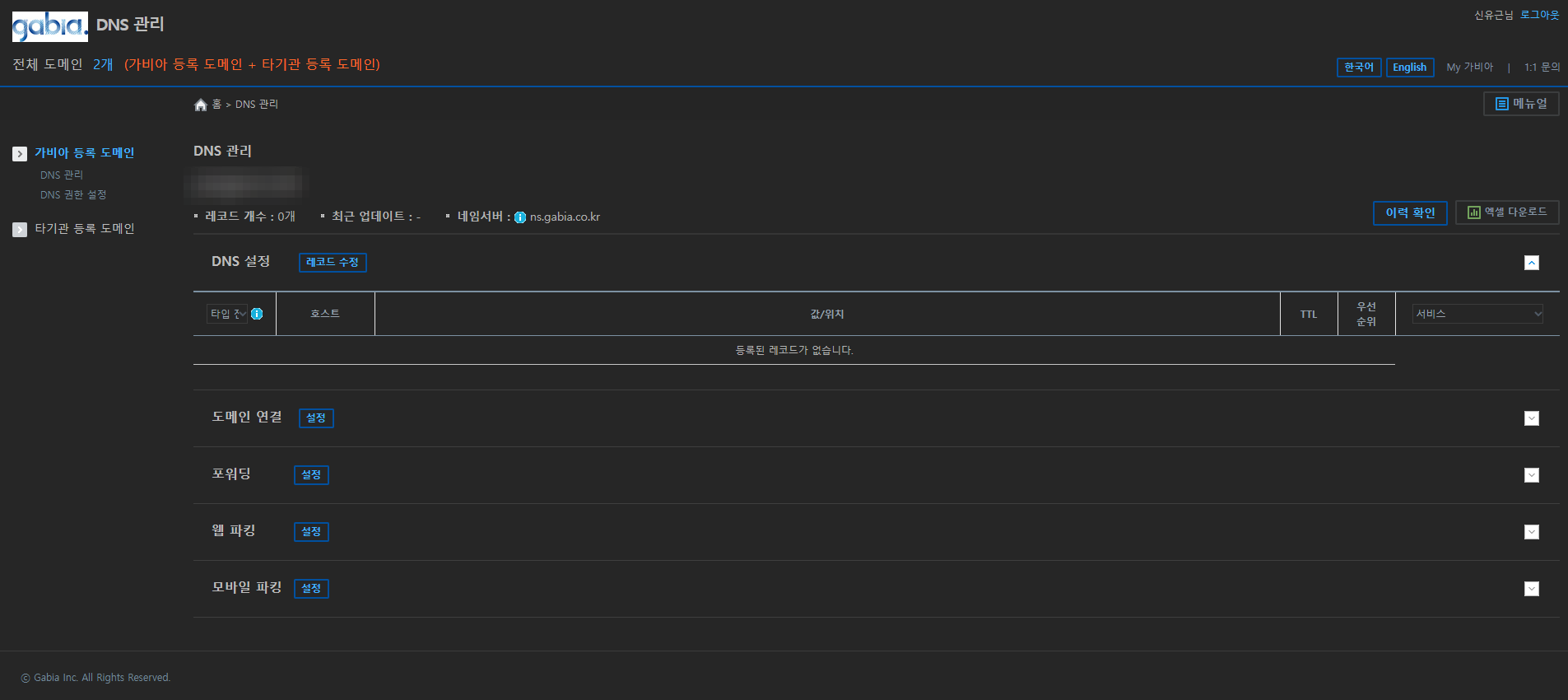 My 가비아 -> DNS 관리 툴에서 설정 할 도메인을 선택합니다.