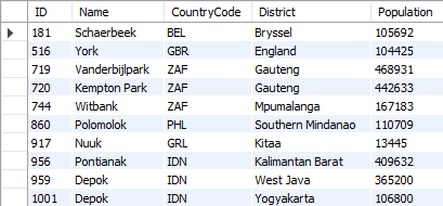 select CountryCode,count(CountryCode) from city group by CountryCode having count(CountryCode)>=70;